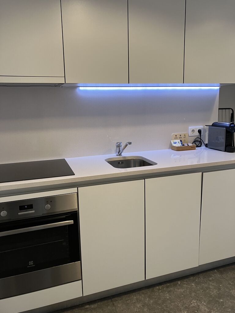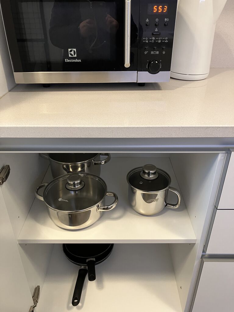 デラックス アパートメントです。キッチンには、電子レンジ、食器洗い機、冷蔵庫、洗濯機、必要なキッチン用品あり。その他エアコン、トイレ2か所など快適な生活ができる用具あり。