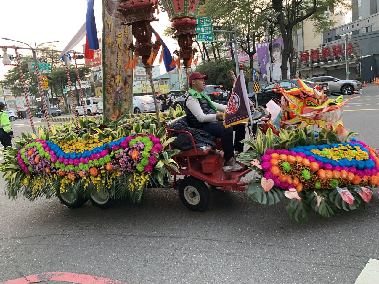 正月元旦でも店が開店し、人でも多い。街のあちこちで神輿を中心に練り歩く隊列がいた。