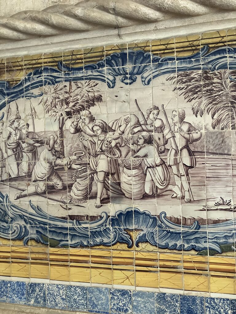 ロープ模様の枠に大航海時代の異国のアズレージョ