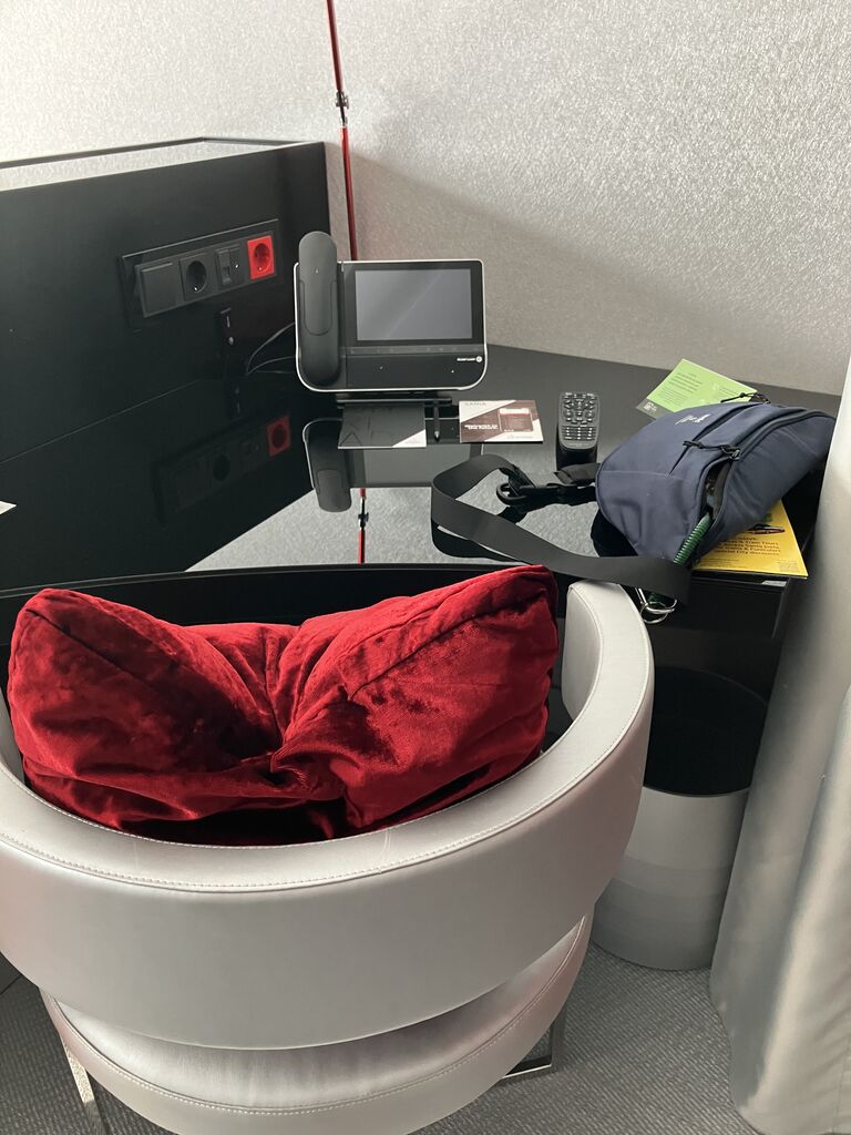ベッドの後ろにデスクとイス