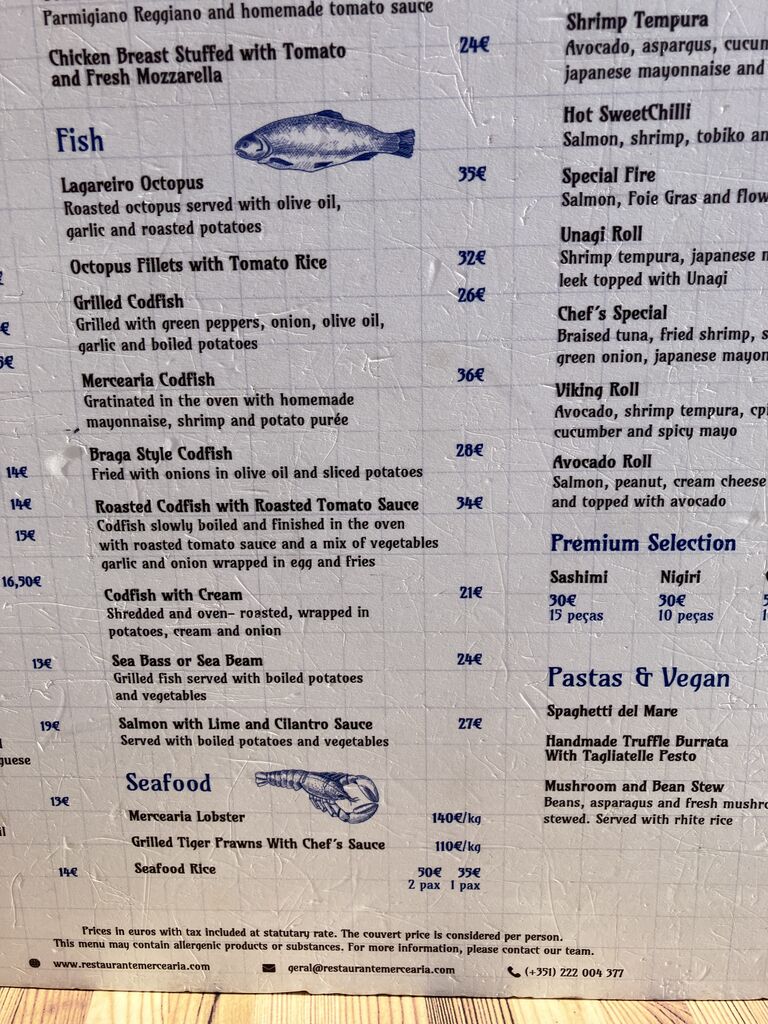 シーフードライスは、ポルトやリスボンの人気店に行きました。金額ではかなりの差がありますが比較するのは難しいです。味は中に入っている具材でも違うようです。