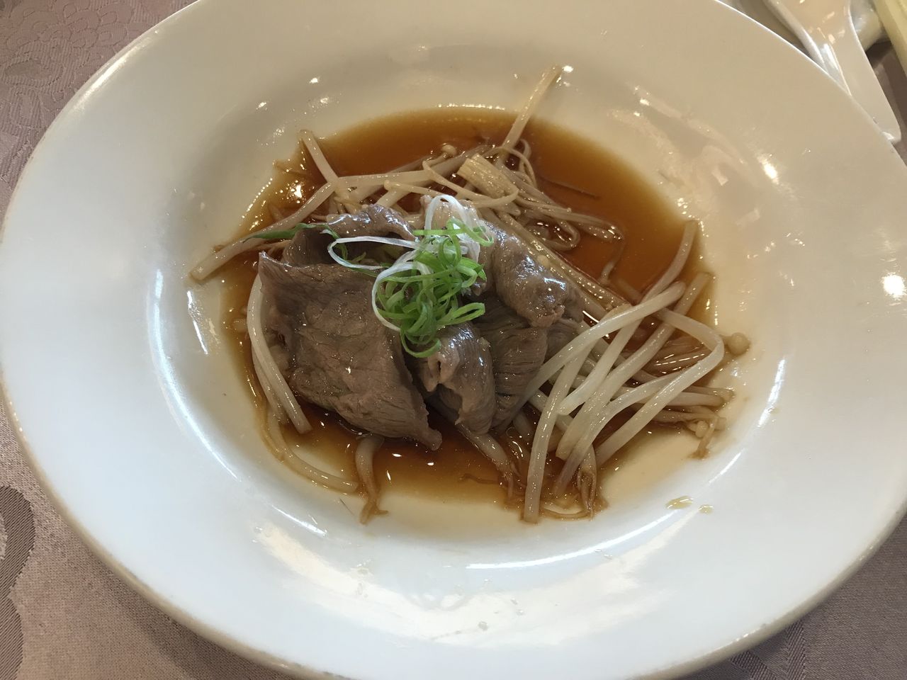 【湯煮込み特級薄く切った牛肉とリョクドウモヤシ】